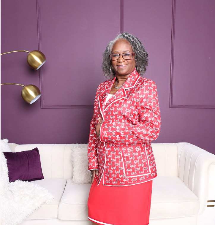 Make a confident entrance in our ΔΣΘ Signature Print Power Blazer, designed for the woman who leads with purpose, pride, and undeniable style. This striking blazer features a rich crimson base adorned with an all-over white Delta Sigma Theta Greek-letter print, creating a bold yet polished look perfect for conferences, chapter events, service programs, or elevated everyday wear.